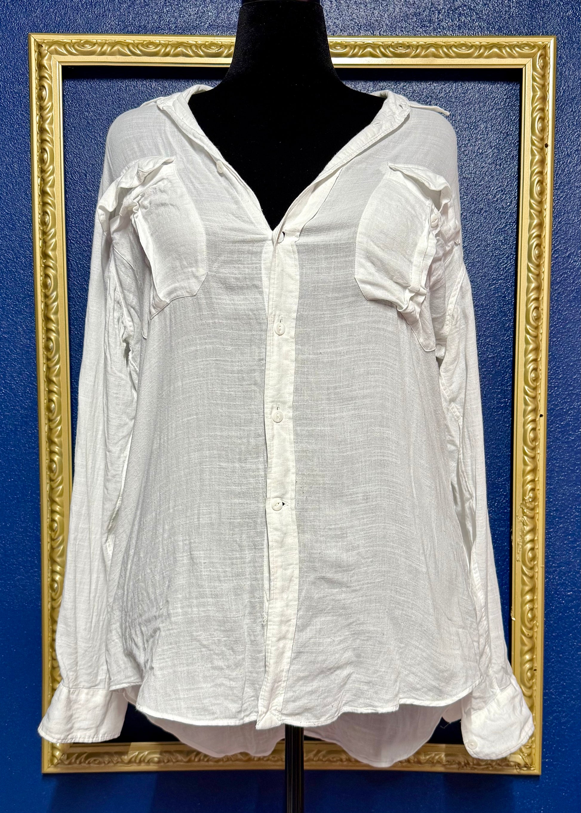 This Athleta White Button Down is a casual, easy staple for any wardrobe. Crafted for comfort and versatility, it pairs effortlessly with jeans or skirts for a relaxed yet polished look. The classic design makes it a go-to piece that transitions seamlessly from day to night.
