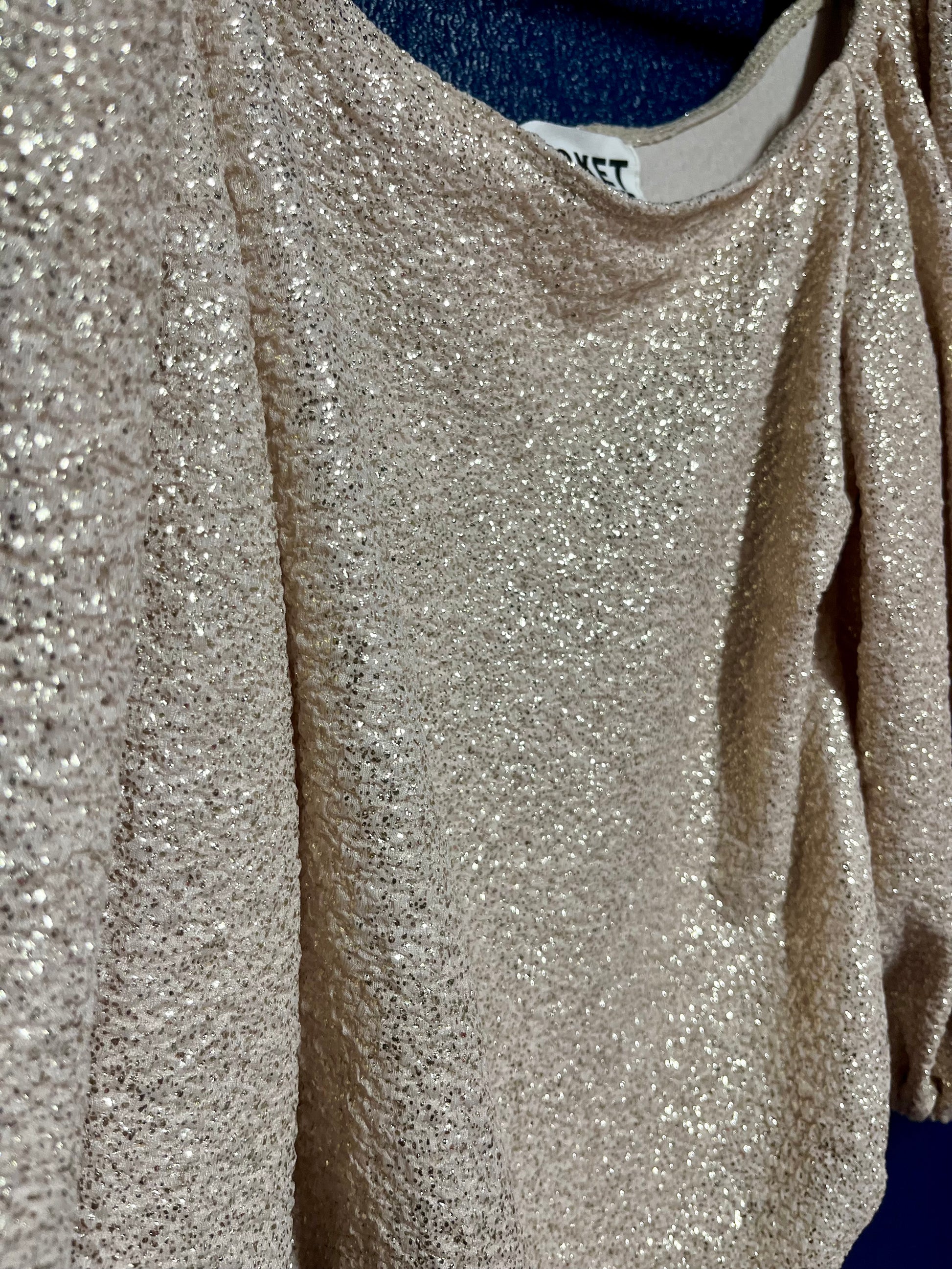 Elevate your wardrobe with this versatile shimmery bodysuit, designed for those who appreciate effortless style. The signature puffy sleeves add a charming, romantic touch, while the off-shoulder capability gives you two distinct looks in one piece. Wear it pulled up for a classic silhouette or slip it off your shoulders for a flirty, modern vibe. The subtle shimmer catches light beautifully, making it perfect for both everyday wear and special occasions. A must-have piece that transitions seamlessly from day to night.