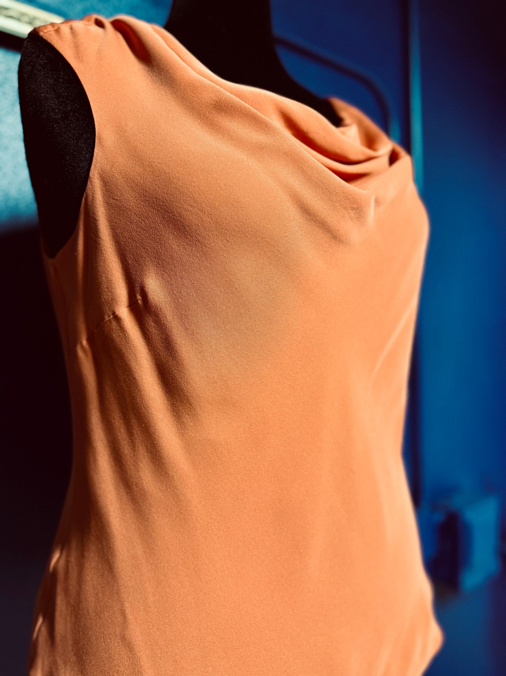 This Classiques Entier cowl neck blouse offers a versatile addition to your fall wardrobe with its flattering sleeveless design and a rich, seasonally perfect color. Its elegant draping neckline adds a sophisticated touch, making it ideal for layering or wearing solo on warmer days. Crafted to balance comfort and style, this blouse transitions effortlessly from day to evening wear.