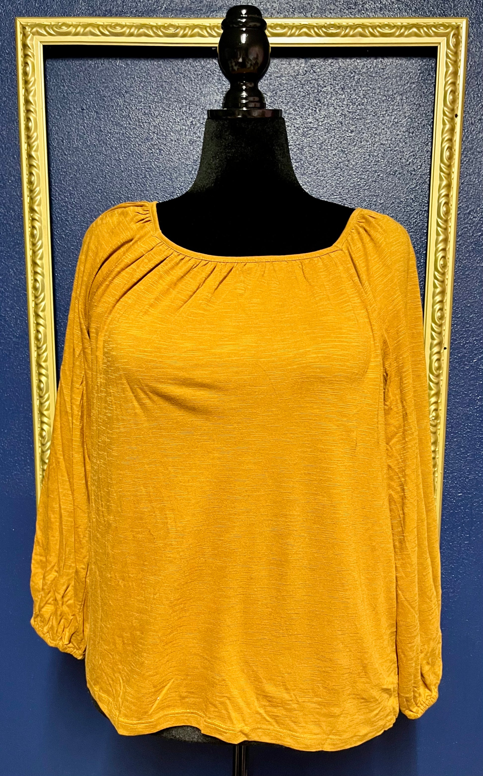 This LOFT Dark Gold Top offers the perfect color for fall, providing a warm, rich tone that complements seasonal wardrobes effortlessly. Its thin, lightweight fabric makes it ideal for layering under jackets or sweaters without adding bulk. As a versatile basic piece, it seamlessly integrates into any outfit, elevating your autumn style with subtle sophistication.