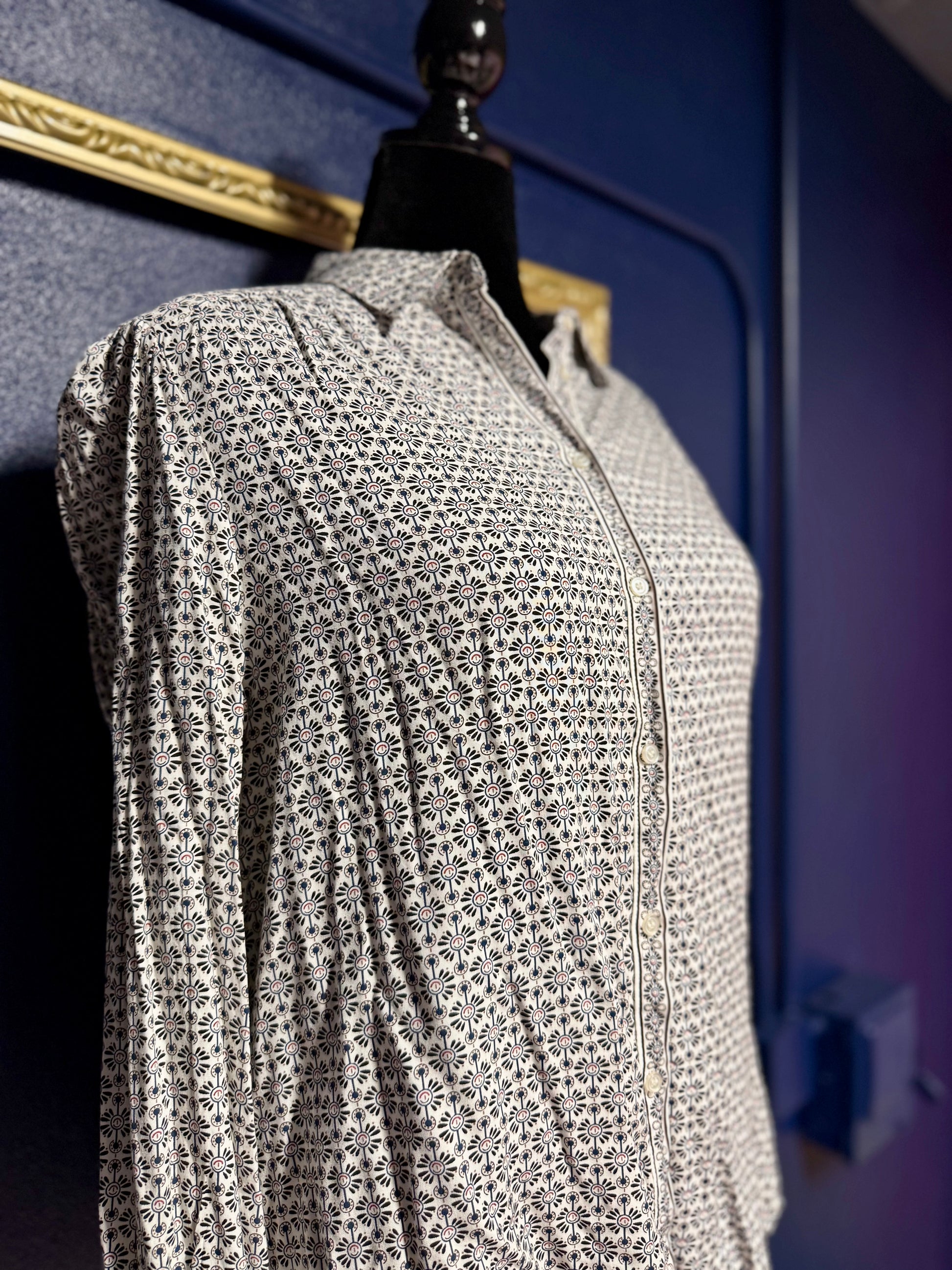 This Max Studio print button-down shirt features a timeless pattern that balances classic style with modern versatility. Crafted for a polished look, it offers a structured yet comfortable fit, making it ideal for both professional settings and refined casual wear. The button-down design enhances its adaptable appeal, allowing effortless pairing with tailored trousers or layered under a blazer. Elevate your wardrobe with this essential piece that delivers enduring style and sophistication.
