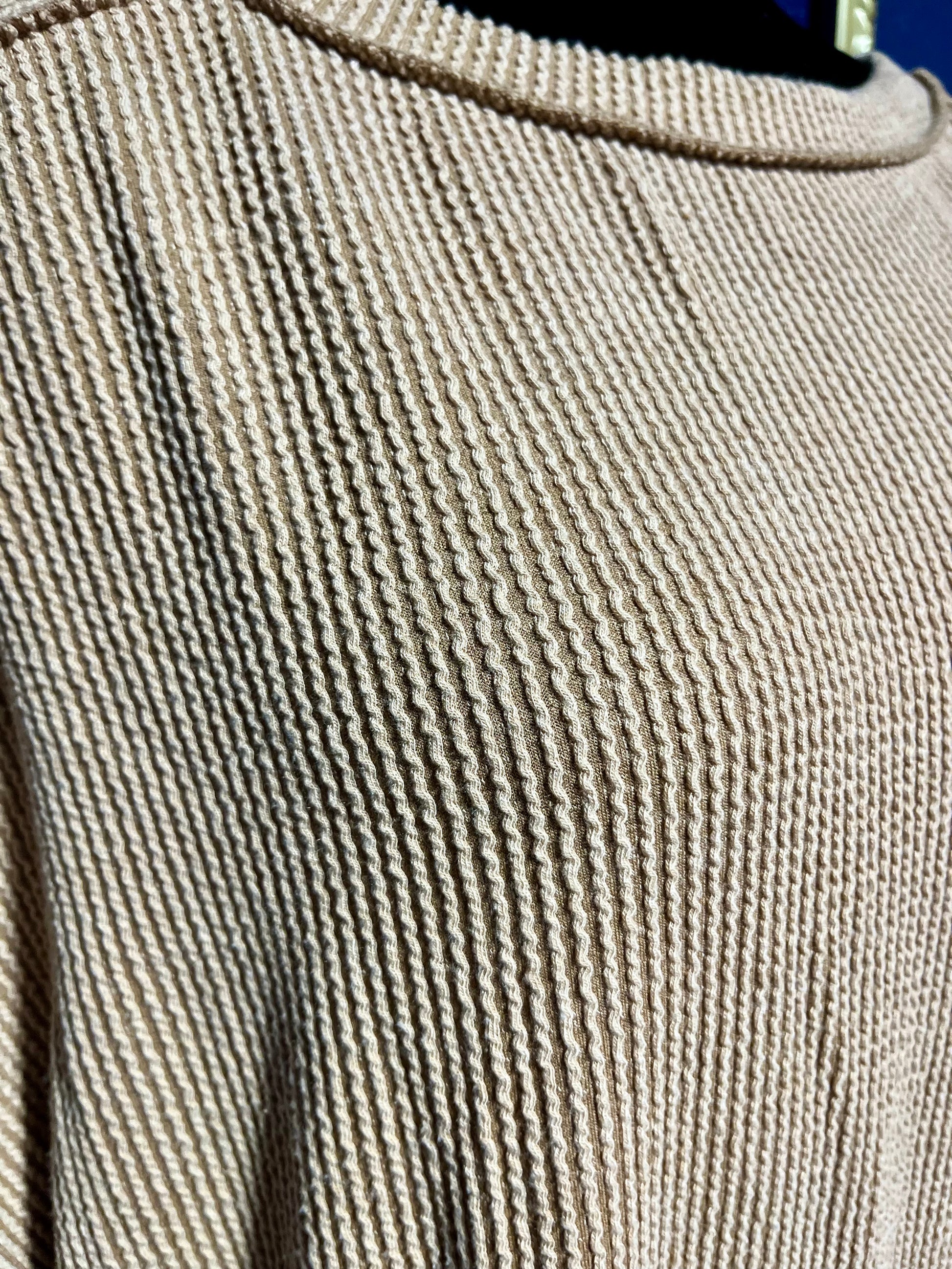 The Reborn J Dark Tan Ribbed Pullover offers an oversized fit that ensures maximum comfort and effortless style. Crafted with a soft ribbed fabric, this pullover is easy to wear and perfect for layering. Its relaxed silhouette provides freedom of movement, making it a versatile choice for casual, cozy looks.